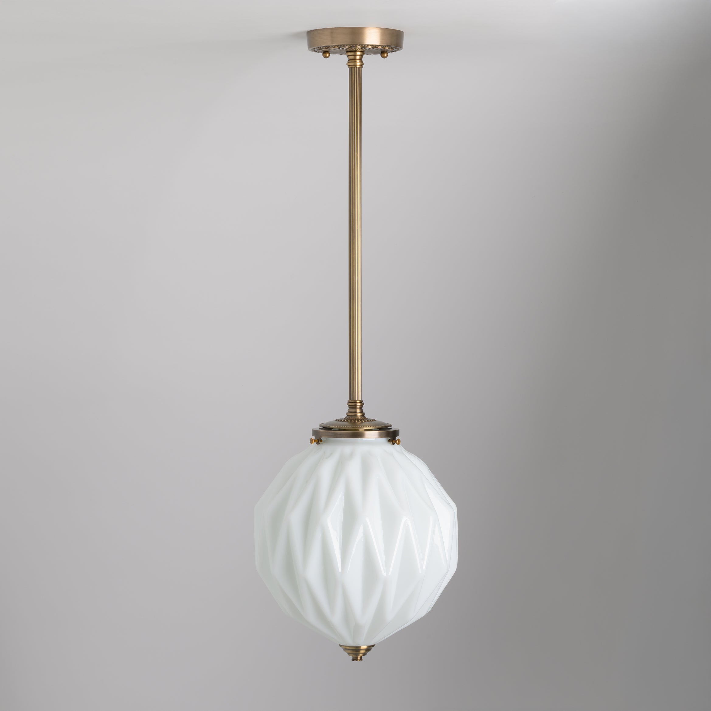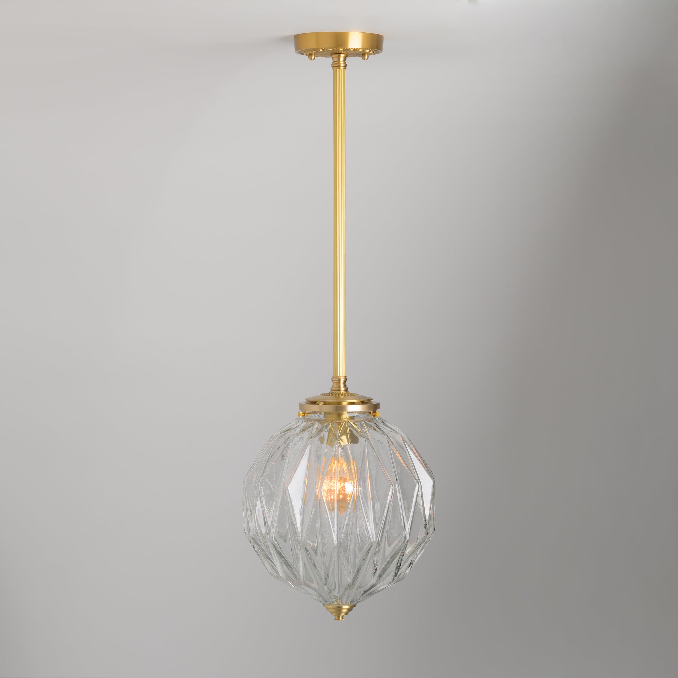 A geometric beauty, the Lorraine shade with its diamond-cut glass is a Mid-Century Modern masterpiece.